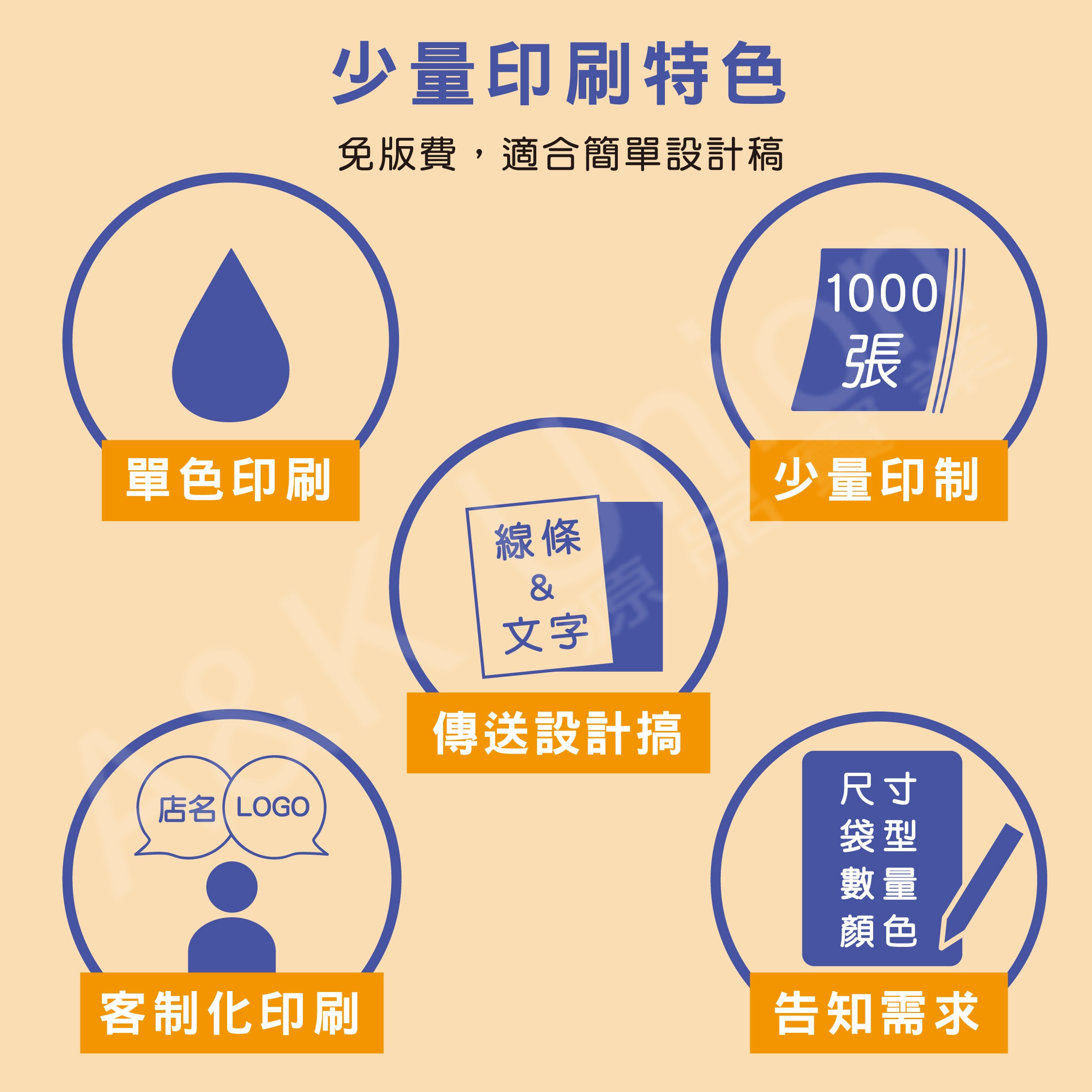 適用初期創業客戶,客制少量 【單色】 印刷,減少客制的囤貨量