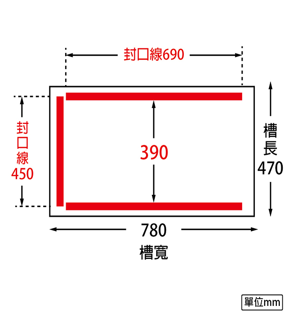 Max. sealing  760 x 5mm x2  650 x 5mm x 1