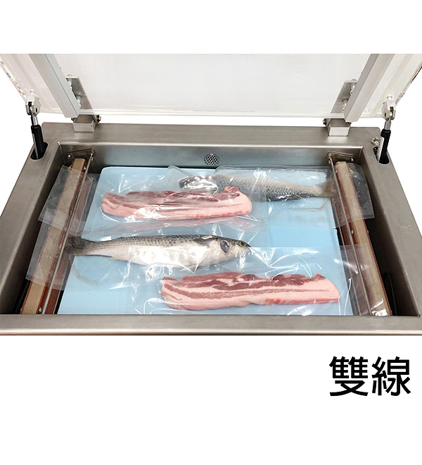 31.5” chamber type vacuum packaging machine. Max. Size of bag 800x600mm (31.5x23.6”) Application: Frozen food, meat, seafood, vegetable, herbs, spices, hardware, electrical parts…etc.